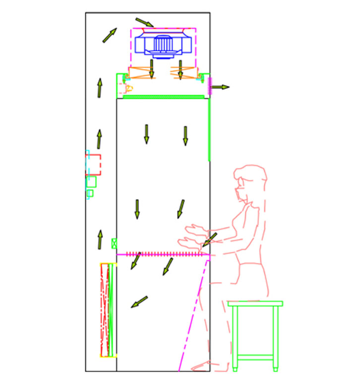 2,均流膜送風(fēng),保證均流膜下方氣流流型效果,層流效果更加明顯。