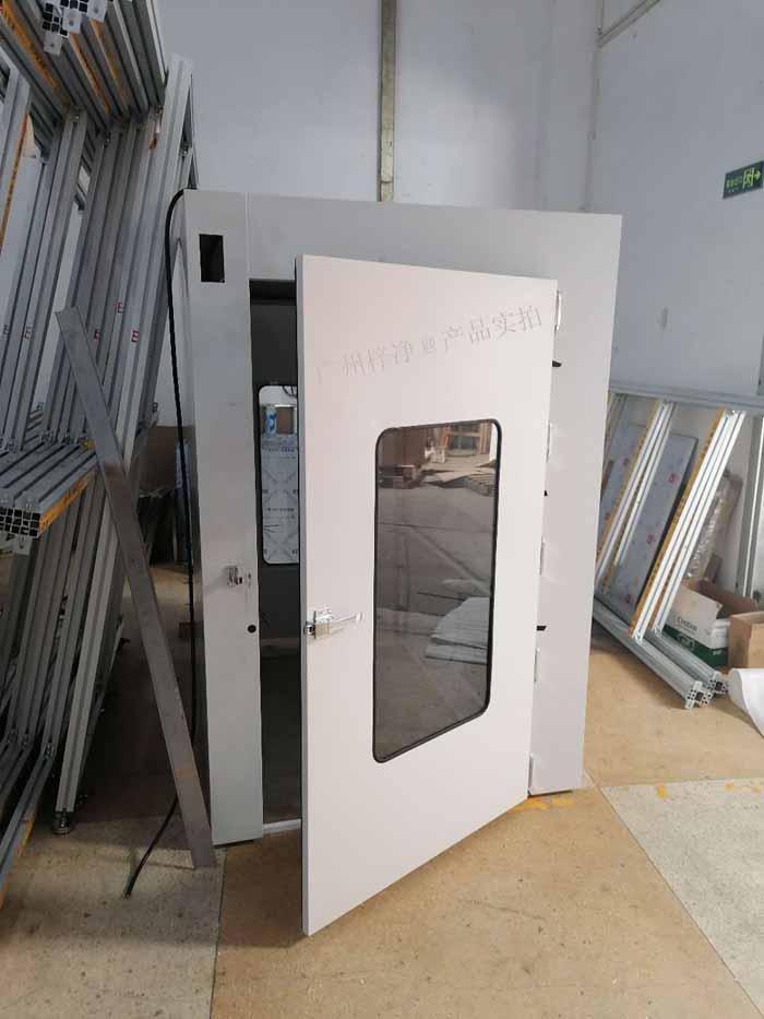 1、落地傳遞窗互鎖裝置:采用電子互鎖和機(jī)械互鎖兩種,風(fēng)淋傳遞窗同時(shí)只能打開(kāi)其中一扇門(mén);